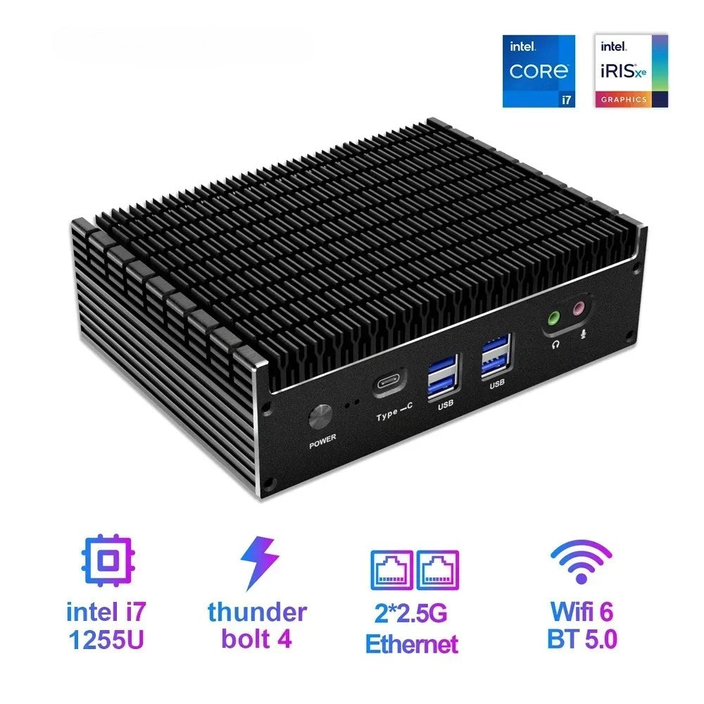 GTBOX IT12-F Fanless Mini PC  Intel  Core 12 Gen i5 1235U i7 1255U Dual LAN 4K Output Supoort Windows 11 Industrial Computer